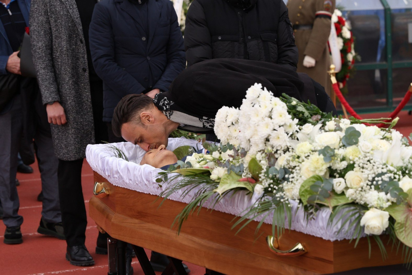 Огромен брой хора поднася цветя на ковчега на големия треньор и му казват последно "сбогом"