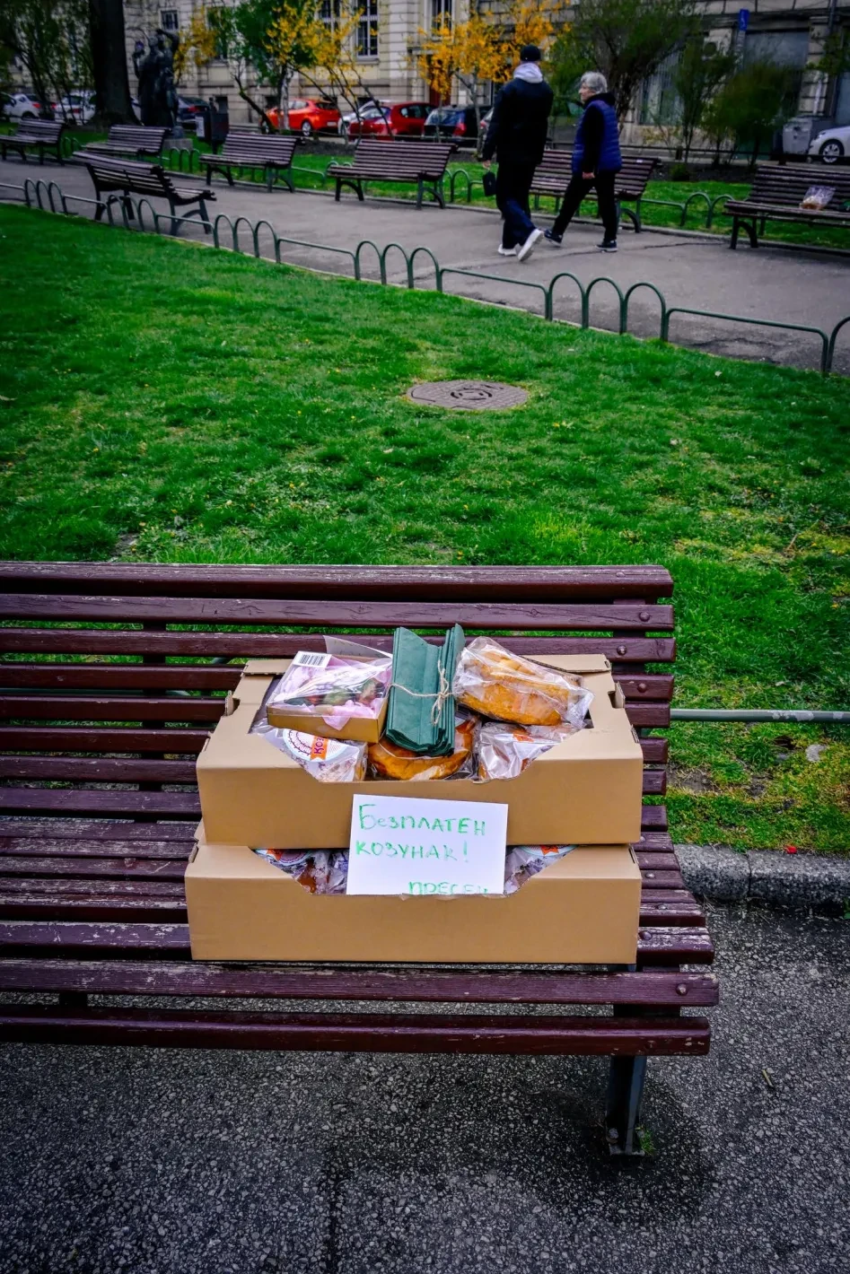 На пейка в градината бяха оставени безплатни пресни козунаци.