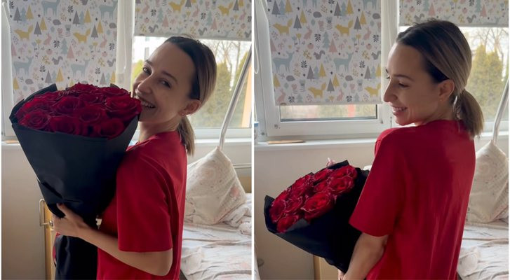 След което тя се показа с огромен букет от кървавочервени рози. И докато мнозина предположиха, че те са от верния й съпруг, с когото не са се разделяли никога досега, тя ги „попари“. Заяви, че те са от верните й приятелки, които дошли да я видят.