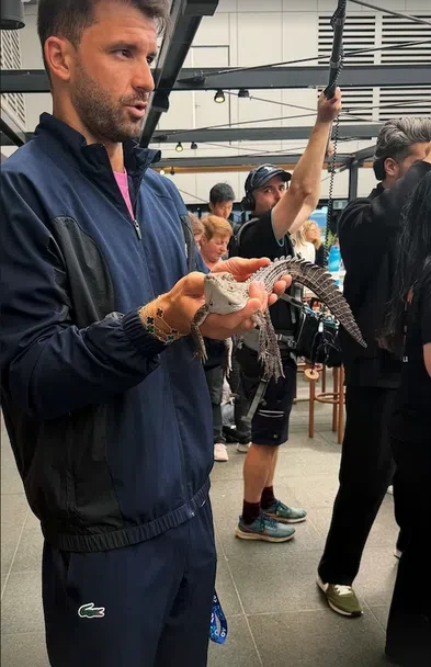 Броени дни преди старта на битките на кортовете на “Мелбърн Парк“, Гришо посети зоологическата градина. Там се щракна как гушка кенгуру и малък крокодил, а със симпатична коала си размени ескимоска целувка.