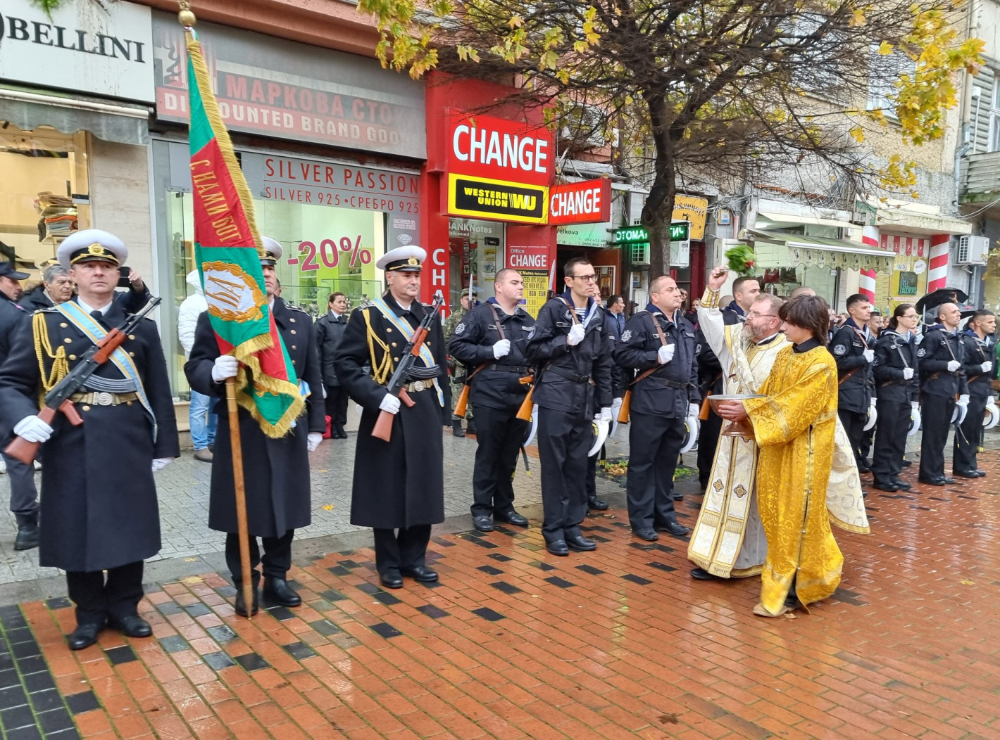 На събитието пред православния храм "Св. Николай Чудотворец" присъстваха областният управител проф. Андрияна Андреева, кметът Благомир Коцев, командирът на Военноморските сили контраадмирал Кирил Михайлов, председателят на Общинския съвет Христо Димитров.
