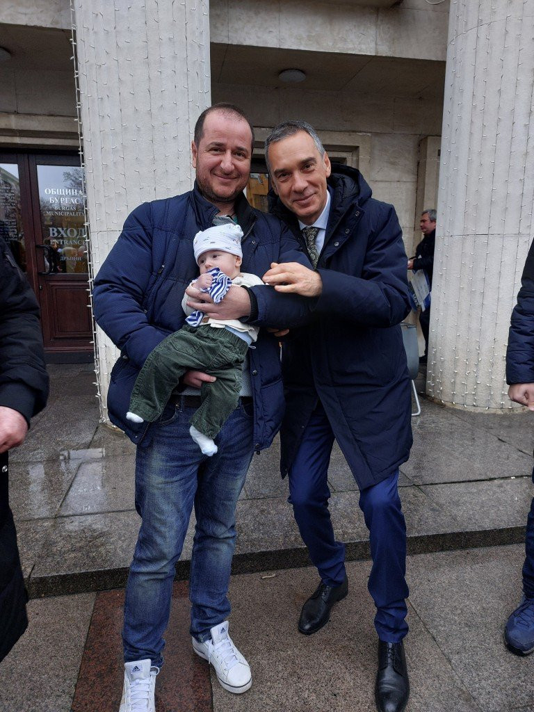 3-месечният Никола бе най-малкият именик, който се включи в традиционната "златна" снимка пред Община Бургас.  Въпреки лошото време, десетки бургазлии, които носят името на Свети Никола се събраха, за да споделят празника си. Малката Никол, която е на годинка и 4 месеца позира в ръцете на дядо си Николай.