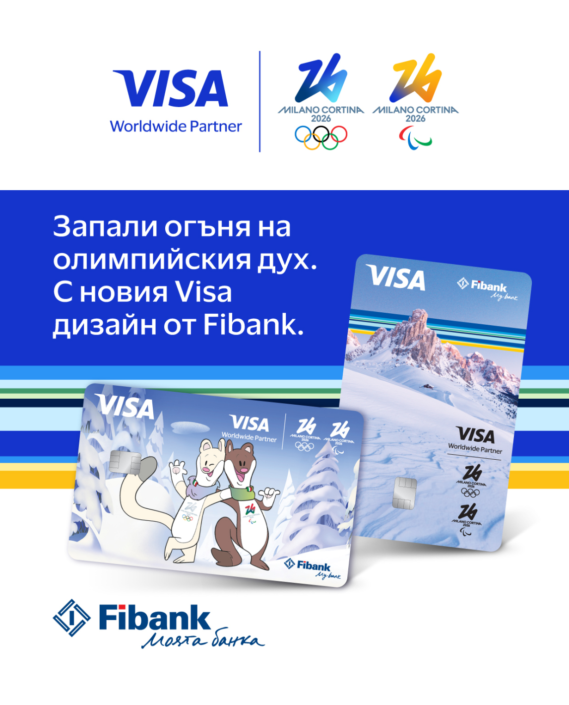 Fibank (Първа инвестиционна банка) и Visa представят нов лимитиран дизайн на своите дебитни и кредитни карти, който е вдъхновен от предстоящите Зимни олимпийски и параолимпийски игри. С него всеки има възможност да се докосне до духа на едно от най-значимите световни спортни събития. Визията съчетава динамични зимни мотиви, символи на движение, скорост и устрем, както и официалния талисман на олимпийските и параолимпийските игри, който придава емоция, позитивно настроение и усещане за принадлежност към най-глобалното спортно събитие през 2026 г. Цветовата палитра и графичните елементи напомнят за снежните пейзажи и състезателния дух, като превръщат картата не просто в платежен инструмент, а в стилен аксесоар, който има и своята колекционерска стойност.