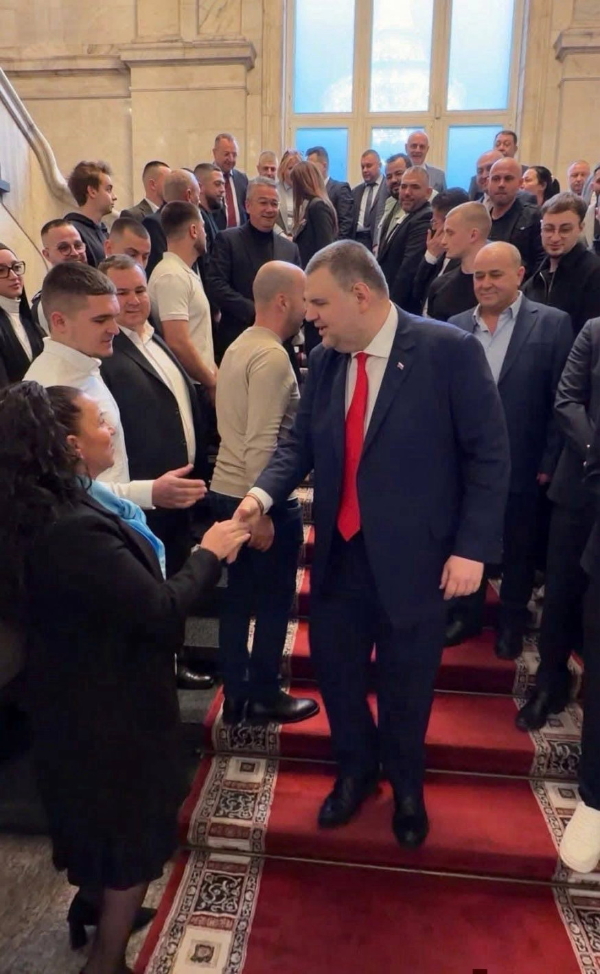Лидерът на ДПС и ПГ на ДПС-НОВО НАЧАЛО Делян Пеевски се срещна с група младежи от област Бургас, които посетиха Народното събрание и Музея на Сглобката, разположен в кабинет 222А.