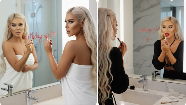 Е, няма как да не отчетем, че в случая не е ползван просто филтър или два, а цял тон такива, както и отделни програмки на фотошоп. Защото реалната Андреа няма нищо, ама нищо общо с образа, за който мечтае от години и който опитва да пробутва на наивните си фенове. То такива май не останаха, така че явно само тя си вярва и се любува на красотата си...
