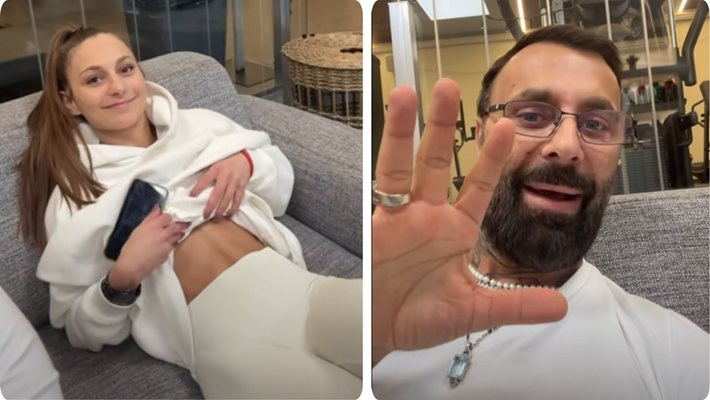 „Да знаете, че дъщеря ми иска да каже, че тренира по два пъти на ден, пет пъти в седмицата“, взе да се смее Дамян и накара Алекс да си вдигне леко блузката и да си покаже корема. Потребителите останаха с поглед „уау“ при вида на плочките на Александра, които изглеждат досущ като от списание.