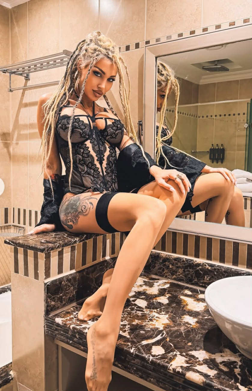 Иначе Джулката се е барнала в дантелено бельо, съчетано с кожени елементи, а на главата си има расти, хванати на кок... „Абе, бива, колкото да „лъснеш бастуна“ ако си на сухо, но за друго не бива“, погнаха я мъже в нета.