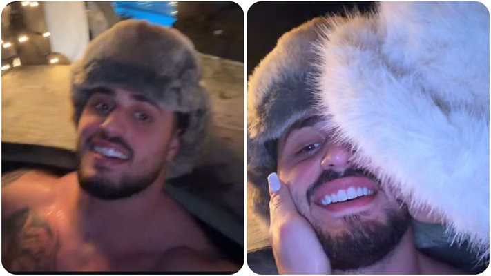 Вчера Александра показа как с шампиона са се слели в страстна целувка само по халати и то на студа, а днес пък нагорещи всички с показно от джакузито. На кадрите се вижда, че Карлос е гол, както подобава, а на главата му има голяма и дебела шапка. С подобна шапка се е нахлупила и Костадинова, като е ясно, че въпросното топло джакузи се намира на открито.