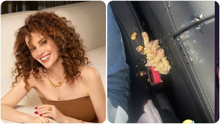 Съпругата на дизайнера скъпар Алекс Ковачев си науми, че ще е много оригинално и смешно да покаже, че си е разсипала папкането, докато била адски гладна. Милата си купила риба тон с макарони и майонезен сос, но тъкмо решила да си нагъне в колата и... хоп - обърнала кутията.
