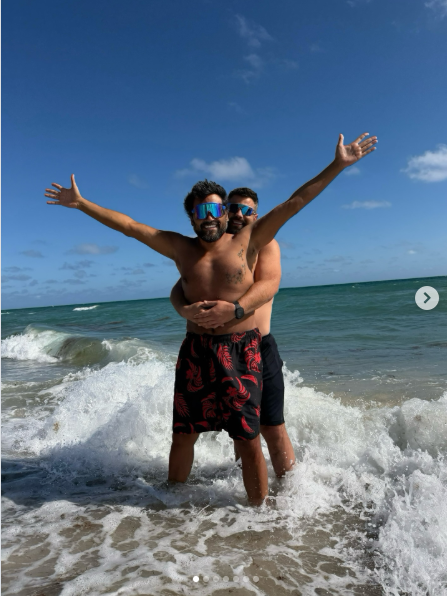 Певецът сподели поредица от снимки, на които позира в компанията на своя любим. Двамата са на брега на морето – излежавайки се на плажа или плискайки се сред морските вълни, или пък похапват вкусна храна в заведенията за хранене. Впечатление прави, че двамата винаги са прегърнати и плътно един до друг.