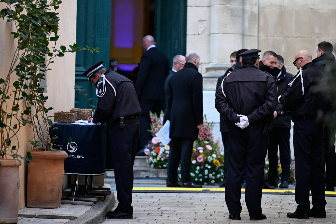 Погребалната процесия премина през малкото пристанище на Сен Тропе под аплодисменти, преди да започне траурната церемония. Сред присъстващите по покана бяха Мирей Матийо, Пол Белмондо и лидерката на френската крайна десница Марин льо Пен.