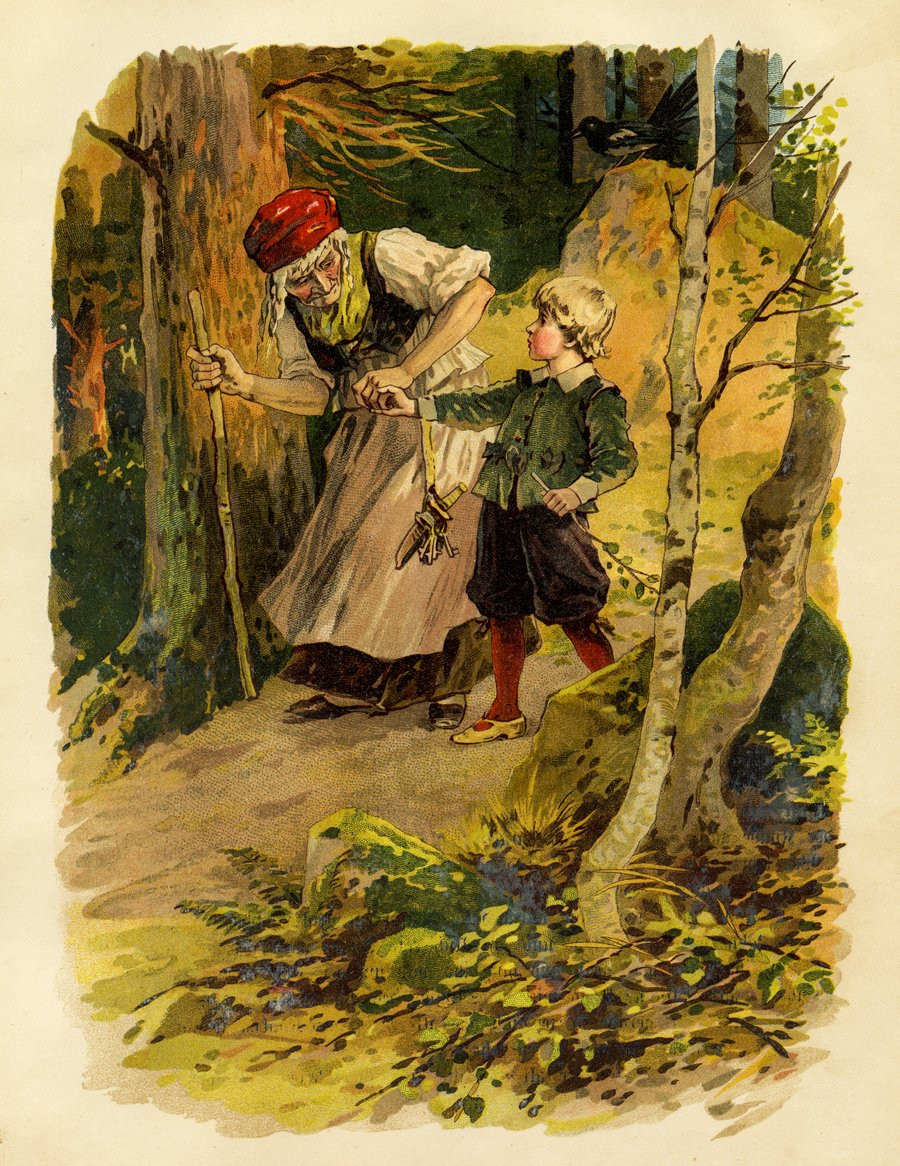 С времето Грим адаптират разказа. Биологичната майка е заменена със "злата мащеха", която позволява на историята да стане по-приемлива за детска аудитория. Бащата е представен като слаб, но не и жесток. Така приказката започва да придобива морална рамка, по-близка до съвременните очаквания.
